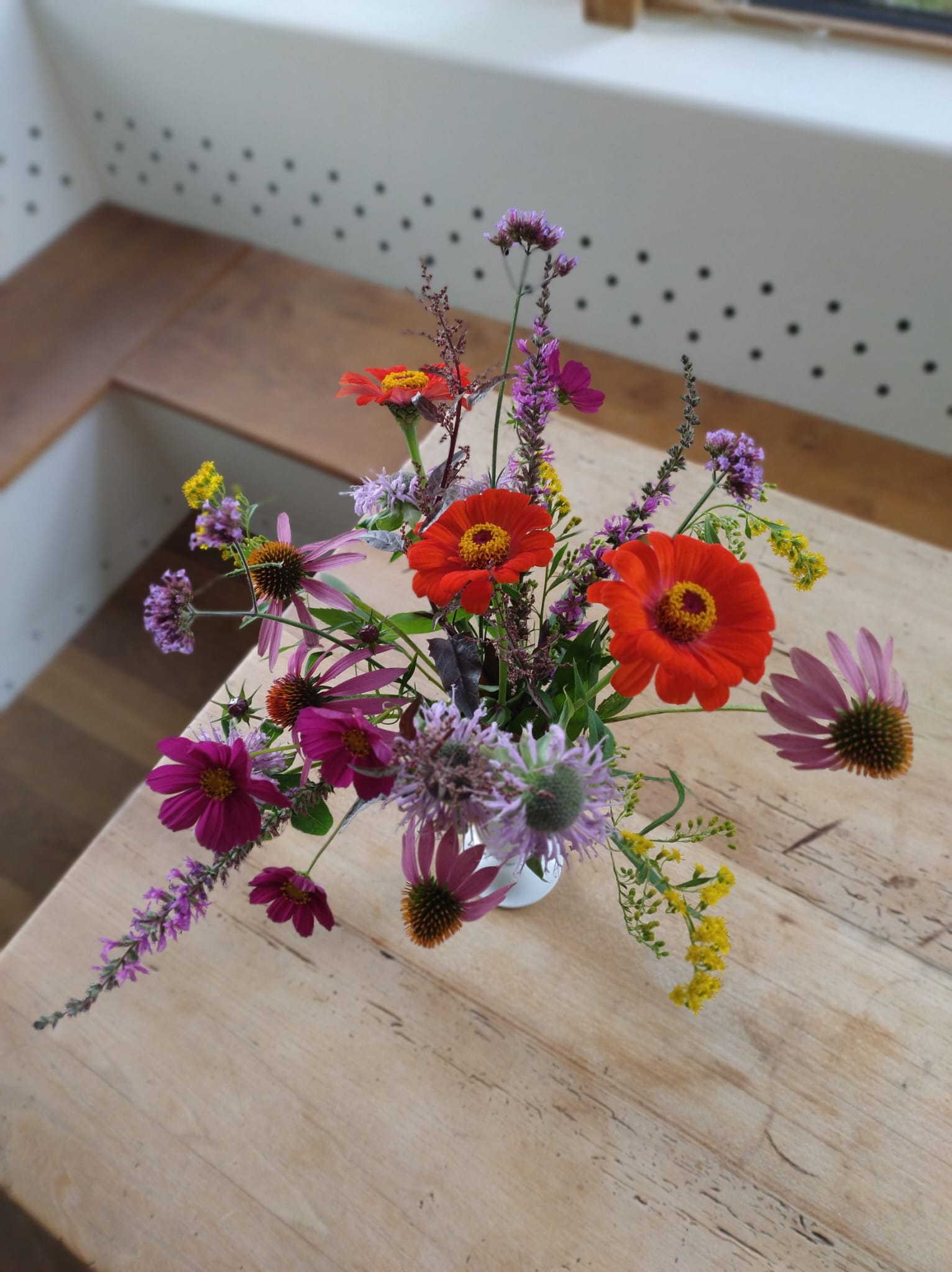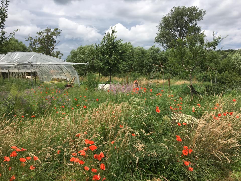 Fin 2015, sur un terrain familial, une ancienne prairie d’une vingtaine d’ares est transformée en champ-potager. Des haies vives, des fruitiers hautes tiges et des haies de petits fruits, une mare, des tas de bois, des pierres sèches,.. abritent un lieu de nature préservé. Petit à petit, les planches destinées aux légumes cèdent leurs places aux fleurs et plantes aromatiques et médicinales, un projet est en train de germer, “Sous les Saules” prend vie en 2021. Marguerite se forme au métier de paysanne herboriste et propose des tisanes et autres produits dérivés du potager.