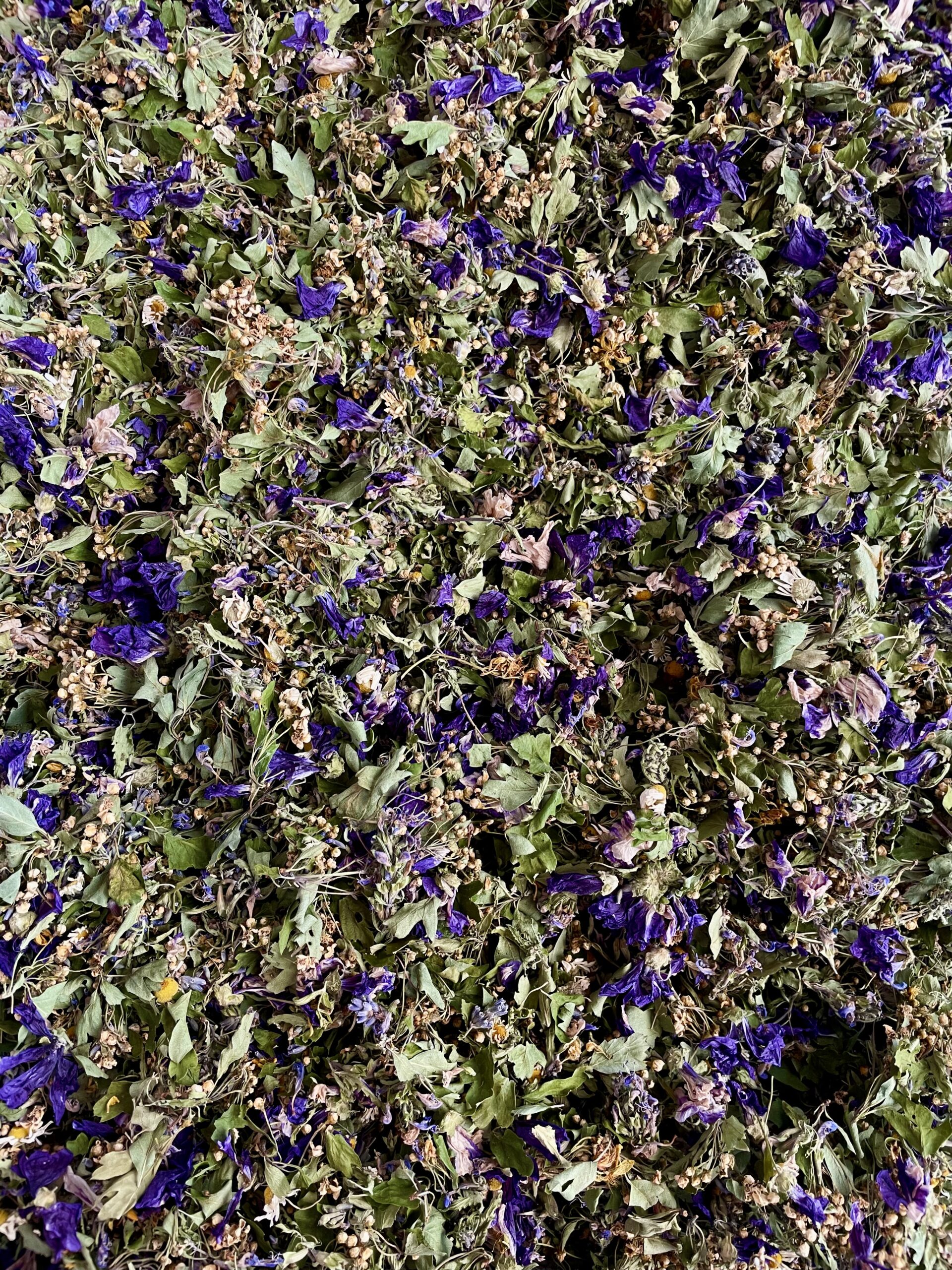 Chauffez de l’eau filtrée jusqu’à frémissement. Pour 1L de tisane vous versez l’eau dans une théière (idéalement en verre ou céramique) et vous émiettez une petite poignée du mélange. Laissez infuser entre 5 et 10 minutes selon votre goût avec un couvercle pour éviter que les arômes ne se volatilisent.
