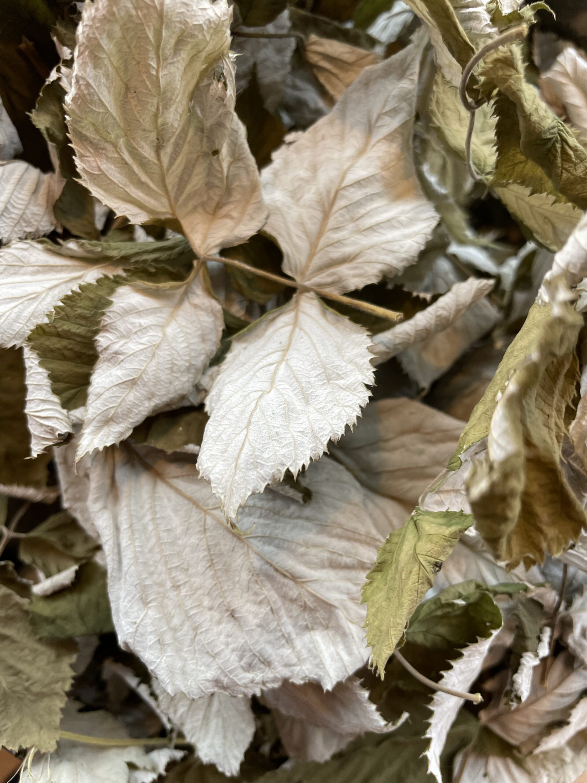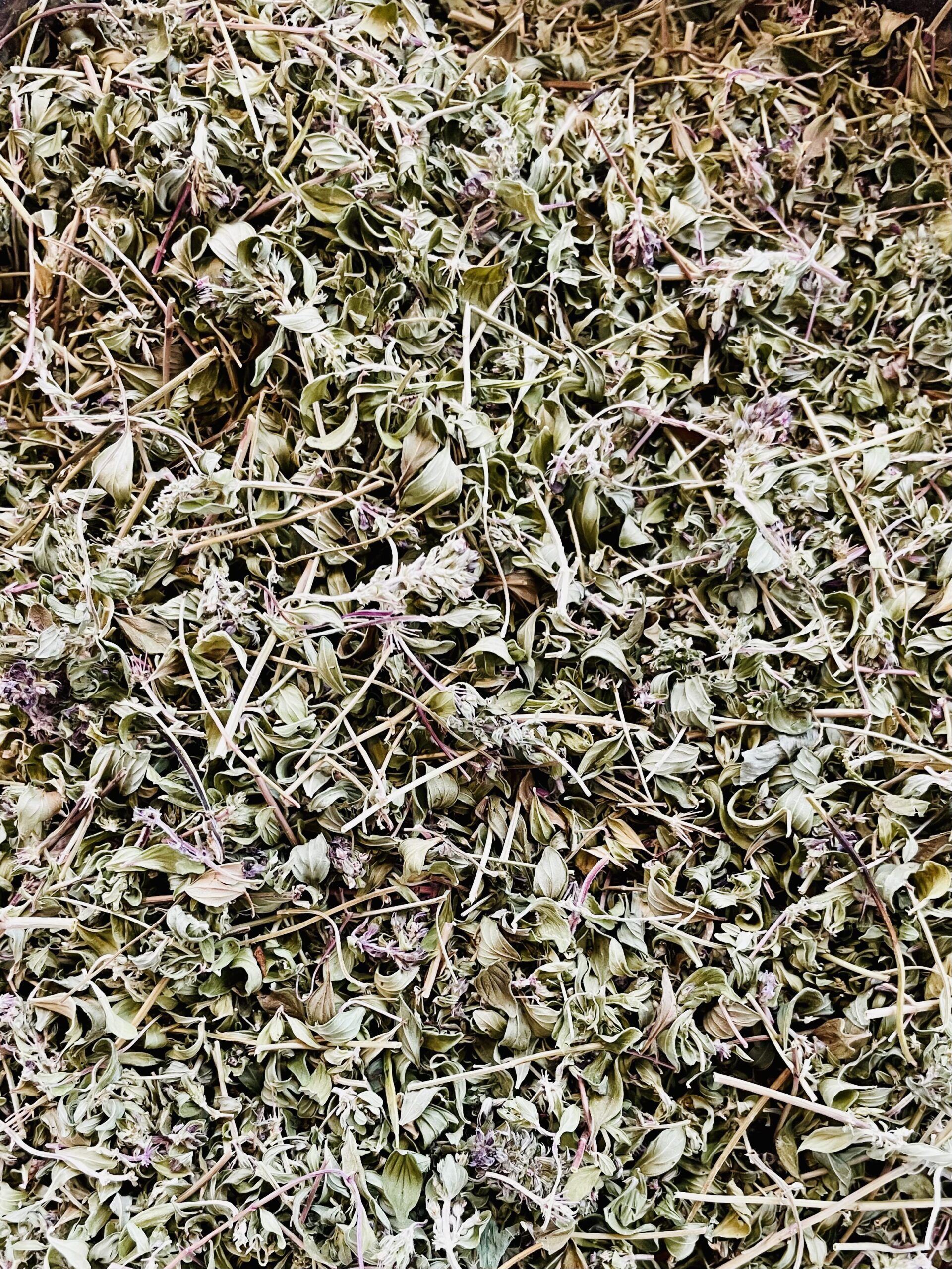 laurier noble, ronce, ortie, thym serpolet, romarin, sauge, thé grec, verveine citronnée, aubépine, noisetier, framboisier, menthe bergamote, matricaire.